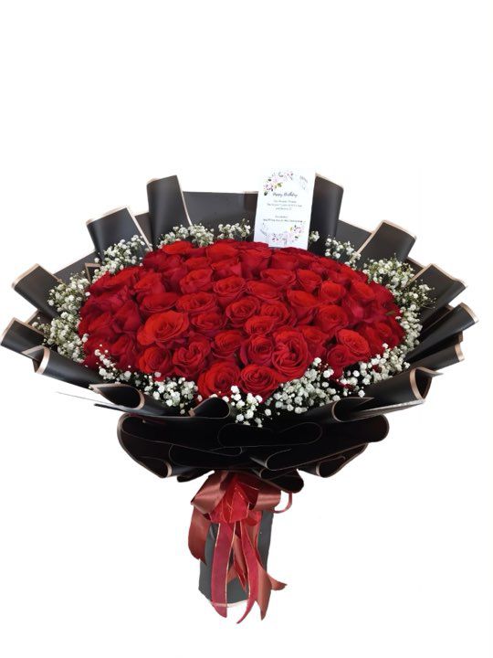 Setiap elemen dalam buket ini memiliki arti tersendiri. Mawar merah melambangkan cinta yang penuh gairah, sementara bunga baby breath merepresentasikan ketulusan dan keabadian. Dikemas dengan wrapping hitam elegan, buket ini juga menunjukkan kekuatan dan keseriusan dalam sebuah hubungan.
